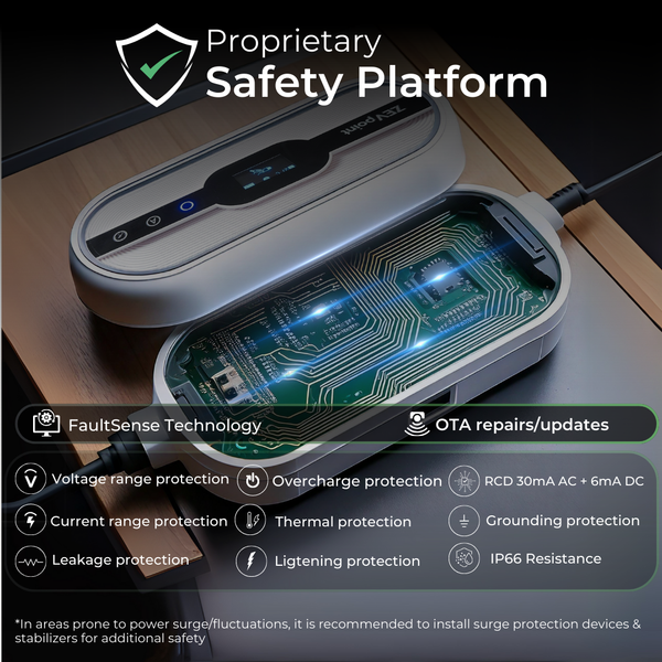The Zevpoint Aveo X1 takes portable EV charging to the next level. With 11kW of powerful charging, it's built for EV users who want faster, safer, and smarter charging—whether at home, office, or on the go. The Zevpoint Aveo X1 Portable EV Charger lets you connect via Wi-Fi and Bluetooth using the Zevpoint Home app. Easily control and monitor your car's charging, set schedules, and view charging records. Download the app from the Apple Store or Play Store, register or sign in, and enable Bluetooth and Wi-Fi to connect with your device. Specifications & Installation Output: 11.0kW Current Options: Switchable to any desired levels Input Voltage: 400-440V Cable Length: 5 +1 meters Connector Type: Type 2 (IEC 62196) Dimensions: 297mm x 106mm x 54mm Weight: 3.5 kg Operating Temperature: -35°C to +60°C Safety Features: Overheat prevention, Short circuit protection grounding, water resistance, dust resistance Installation Requirements Power Socket: A dedicated 16A 5 Pin power socket with adequate connected load is required for optimal performance (included with the packaging) Wiring: Use a minimum of 6 square mm, 5-core copper cable to handle the electrical load safely. In hot environments, consider using a 10 square mm copper cable. Earthing: Ensure the power socket is properly earthed to prevent electrical hazards. Circuit Breaker: Install a 25A four-pole MCB (Miniature Circuit Breaker) and a Surge Protection Device (SPD) to protect against power surges and electrical faults. Voltage Stabilizer: If facing frequent input power fluctuations, use an appropriate voltage stabilizer.