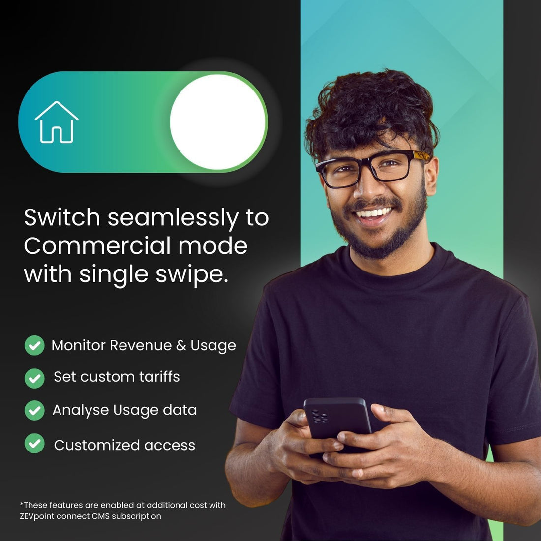 Meet DUOS by ZevPoint – It is India’s first OCPP-enabled EV charger with a seamless Home–Commercial Toggle Switch. Whether you’re charging your EV at home or operating in a commercial setting, DUOS adapts instantly with just one switch, giving you the flexibility to use a single charger for both personal and business needs. Engineered for performance, safety, and convenience, DUOS is more than just a charger. It is a smart charging solution. Specifications & Installation Output: Up to 7.5kW Current Options: 6A-32A Input Voltage: 220V Cable Length: 20 feet Connector Type: Type 2 (IEC 62196-2) Dimensions: 480mm x 400mm x 160mm Weight: 6.5 kg Operating Temperature: -35°C to +60°C Safety Features: Overheat prevention, Short circuit protection grounding, water resistance, dust resistance, emergency stop swtich Installation Requirements Power: A dedicated single phase power source with adequate connected load is required for optimal performance Wiring: Use a minimum of 6 square mm, 3-core copper cable to handle the electrical load safely. In hot environments, consider using a 10 square mm copper cable. Earthing: Ensure the power source is properly earthed to prevent electrical hazards. Circuit Breaker: Install a 40A two-pole MCB (Miniature Circuit Breaker), Surge Protection Device (SPD), and RCD (Residual Current Device) to protect against power surges and electrical faults. Voltage Stabilizer: If facing frequent input power fluctuations, use an appropriate voltage stabilizer.